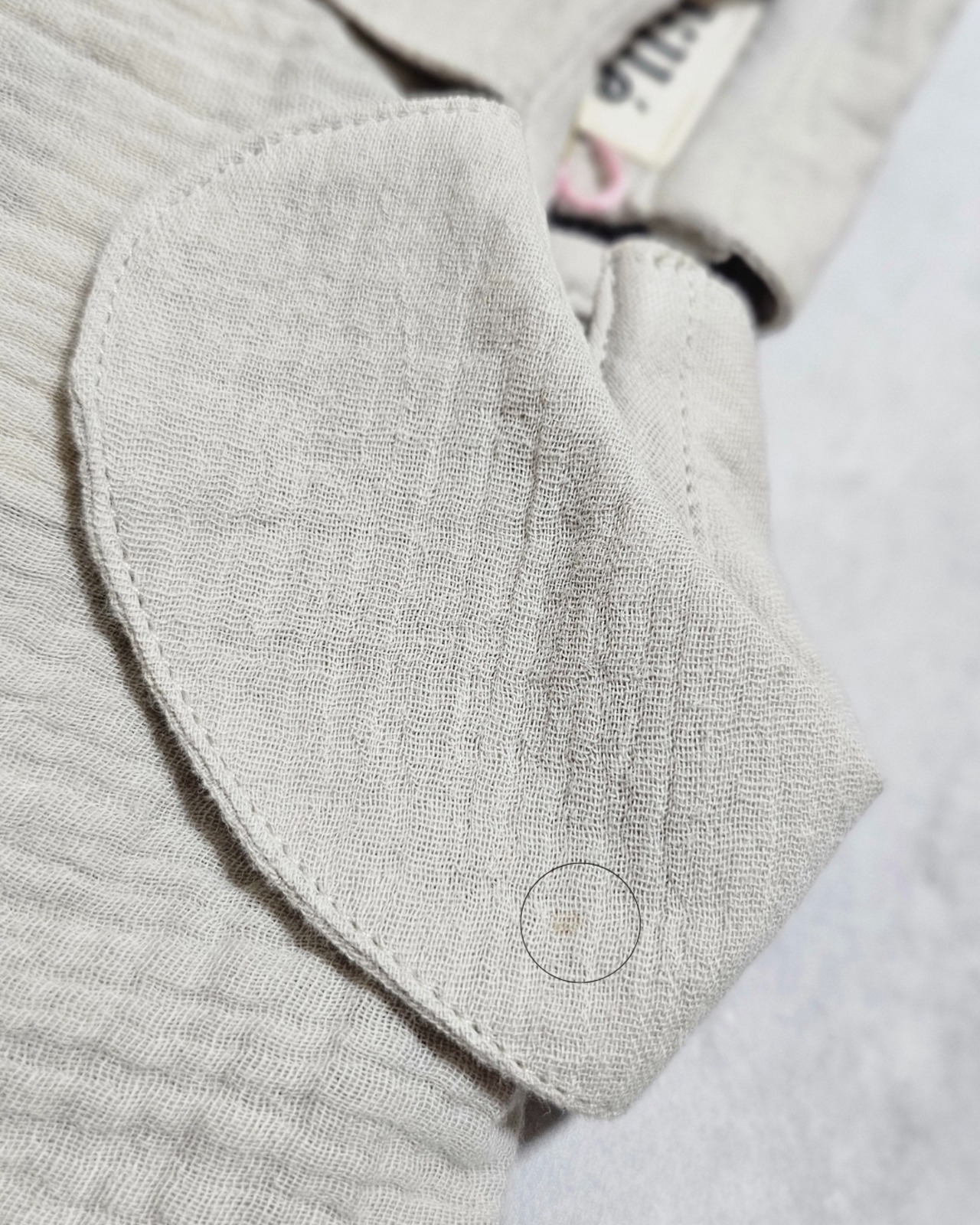 検品の際に襟部分に小さな汚れが見つかりました。