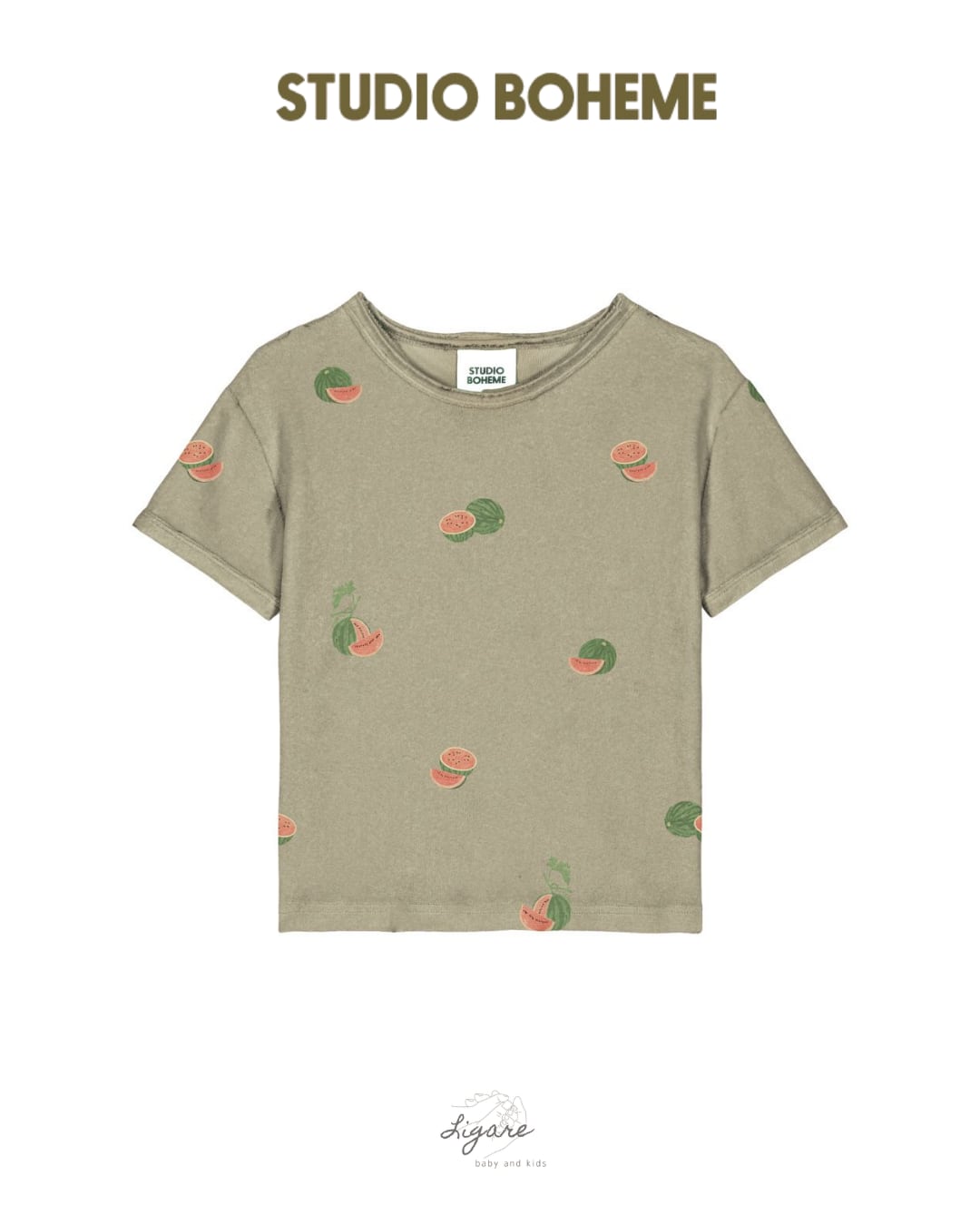 予約販売《 STUDIO BOHEME 》TSHIRT ESSENTIAL / GOLDEN GREEN WATERMELON (12M・18M・24M) | Ligare baby and kids